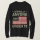 Esta design tem humor político dizendo literalmente qualquer abaixo de 70 anos com uma bandeira americana.