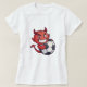 A bold and fun design of a little devil holding a soccer ball with a mischievous smile. Ideal for football enthusiasts with a touch of mischief and energy.