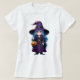 Esta camiseta adorável mostra uma criança segurando uma abóbora com um sorriso no rosto. Ela está vestindo um vestido roxo com um arco correspondente na cabeça. Esta camisa é perfeita para amantes do Halloween que querem mostrar seu estilo bonito e festivo.