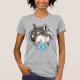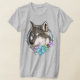 Camiseta Lobo-Cinza e Flores Ilustrados
