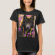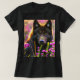 Camiseta lobo negro em flores cor-de-rosa