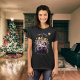 Camisa preta. Personalize e adicione sua própria foto e logotipo da empresa. Uma árvore de natal ouro bauble como quadro. Adicione um texto, nome ou URL da Web.