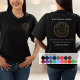 Esta camisa preta de marca profissional é fácil de personalizar. Este é um simples design de camisa de negócios, feito para ser fácil de personalizar, plugando seu logotipo (insira uma vez para mudar as imagens frontal e traseira) e o texto para o modelo. Perfeito como um promocional doado ou como um trabalhador casual da empresa! Este design de dois lados vem em múltiplas cores escuras perfeitas para profissionais!