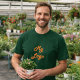 Uma camisa verde. Personalize e adicione o logotipo de sua empresa, tanto na frente quanto no verso.