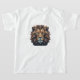 O logotipo do leão é exibido com destaque no centro da camisa. O logo pode ser uma ilustração detalhada da cabeça de leão, com um homem fluente e uma expressão poderosa. Em alternativa, poderia ser uma design mais estilizada e minimalista, focada na silhueta do leão ou num solteiro, forte como seu rugido. O esquema de cores é ousado e impactante. Você poderia usar cores clássicas como ouro ou laranja para o leão, em contraste com uma camisa preta ou branca para um olhar de alto impacto.