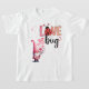 This young girls shirt features an adorable gnome holding flowers, balloons and even a cupcake. Above him it says LOVE bug with a ladybug for the O. It's cute as can be and any young girl will love wearing it. Best of all? It's available in all sizes from infants up to adults.