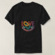 A design da t-shirt "Love Encircles" apresenta uma fonte divertida com o texto arranjado numa formação circular, criando uma composição visualmente envolvente e significativa. Os corações estão interligados para formar o círculo, simbolizando a natureza abrangente do amor. A estética geral é alegre e estimulante, perfeita para aqueles que querem expressar seu amor e apreço pelos outros