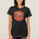 Fun wine Holiday T-shirt. Large glass of sparkling wine in front of glowing wreath with the fun words,