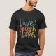 Amor Ria Ao Vivo. Espalhe positividade com esta camiseta vibrante! As palavras "Love, Laugh, Live." são exibidas em uma alegre variedade de cores, cada palavra entupindo com uma tonalidade divertida. Esta design é perfeita para quem quiser expressar sua visão otimista da vida.