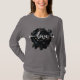 Um design gráfico romântico e elegante que apresenta um rosa preto entrelaçado com a palavra "amor" em escrita cursiva.