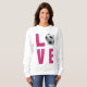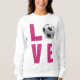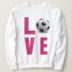 Love Soccer word design com letras faíscas cor-de-rosa quente e o "o" é substituído por uma bola de futebol.