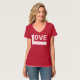 Esta camiseta vermelha das mulheres com uma impressão ousada de "AMOR" é perfeita para visto casual, mas também é uma escolha excelente para o Dia do Namorados. Quer você esteja vestindo em um encontro, celebrando com sua pessoa especial, ou dando para seu namorada, é uma maneira simples e na moda para mostrar seu amor.