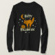 Hallowe'en feliz! Obtenha no espírito com um gato alaranjado de Hallowe'en que arqueia a para trás, cauda acima; uma lua de um quarto de sorriso da laranja ou lua do crescente; lanterna do jaque o ou abóbora cinzelada; luz - amarelo e luz - estrelas azuis; e tipo amarelo pálido pia batismal do creepshow - todos os símbolos assustadores do divertimento clássico de Hallowe'en. Esta é uma grande camisa para hallowe'en o partido, o truque ou o tratamento com os miúdos, vestuário sazonal para a casa, escola, escritório/local de trabalho. Você pode mudar ou personalizar esta mensagem se você quer. Tenha uma boa estadia assustador!
