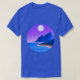 Tee em uma ilustração circular de uma lua de cheio, costa marítima, colinas e montanhas em tons de azul profundo e violeta