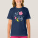 Um design de livro com as palavras "All Night Reader" cercado por lua amarela e estrelas e livros cor-de-rosa que parece excelente contra uma camiseta cor escura. *Observe que a Marca d'água do Zazzle que aparece na visualização de zoom NÃO aparecerá no produto impresso final. © Bookish e Maravilha