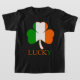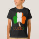 Prepare-se para a Rua. Dia de Patrick e vista esta camisa de sorte com as cores da bandeira da Irlanda. As cores verde, branco e laranja são usadas em forma de uma pedra-do-mar. Abaixo está um texto moderno e moderno que diz "LUCKY" em letras fáceis de ler.