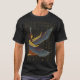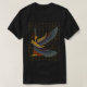 Camiseta que apresenta Ma'at sentada com asas abertas com a pena de avestruz na cabeça. Este design de Ma'at tem a deusa egípcia no centro de um fundo de hieróglifos egípcios.