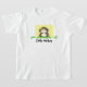 Um macaco legal a olhar num fundo amarelo, vinhas verdes à sua volta. Uma banana no pelo. Diz "macaquinho". Uma camiseta de animais selvagens divertida.