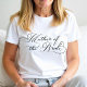 Celebre o maior apoiador da noiva com estilo com esta linda camiseta "Mãe da Noiva", apresentando uma elegante escrita preta em uma camiseta branca imaculada. Perfeita para chás de panela, momentos de preparativos ou festividades do fim de semana do casamento.