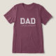 Uma camiseta branca na moda com um design "PAI" lúgubre em caracteres cor-de-rosa, com a "Universidade Personalizada" sutilmente integrada abaixo. Perfeito para dar ao mães ou adicionar um toque divertido e personalizado ao seu guarda-roupa. Feito de um tecido confortável e de alta qualidade.