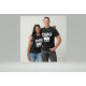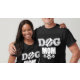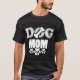 Celebre a alegria de ser uma orgulhosa mãe de cachorro com este design de camiseta combinando ousado e divertido. O gráfico apresenta a frase “DOG MOM” em letras brancas nítidas, com uma torção encantadora — o “O” em DOG é substituído por um ícone de osso fofo, e duas pegadas de patas se sentam docemente abaixo da palavra MOM. A paleta de alto contraste preto e branco faz o design se destacar, dando-lhe uma aparência limpa e moderna que se destaca em fotos e pessoalmente.