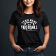 A camiseta personalizada de futebol para Mães - mostrada no Design preto mostra um logotipo de futebol na moda com texto esportivo personalizado. Personalize com o nome do seu jogador de futebol e o número de camisa. As cores da design branca e da camisa preta podem ser modificadas.