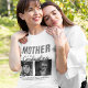 Dúplice graduados, celebrações duplas de festa! Estas modernas camisas de mãe dos graduados para formatura, apresentam 2 graduados e suas fotos com um modelo de anúncio elegante. Todos os estilos de fonte e cores de fundo podem ser alterados clicando no link personalizar ainda mais após a personalização.