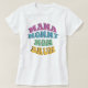 Camiseta Colorida Engraçada para uma legal mãe! Design apresenta uma retrorgrafia colorida e diz 'MAMA, MAMÃE, MOM, BRUH'.