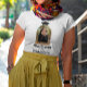 Orgulhosa mãe formada em camisa personalizada com uma foto do formando e do ano com um boné de formatura coroando uma foto em forma de arco do seu filho ou filha.