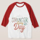 A t-shirt apresenta a mensagem motivacional "Fortalecer cada dia" num design ousado e multicolorido. Cada palavra poderia ser uma cor vibrante diferente, ou as cores poderiam se misturar em um gradiente. O texto está centrado na camisa, com bastante espaço ao seu redor para que o design se destaque.