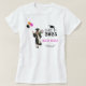 Ilustrações de graduação em aquarela com moça de vestido e boné, segurando buquê e balões. Modelos de texto editáveis para adicionar sua própria escola, nome e ano.