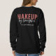 Elevate your beauty brand with this modern blush pink makeup artist employee sweatshirt with logo and custom website, designed for ambitious MUAs building a standout brand. There is a pocket design on the front, and branding on the back of the sweatshirt.
