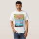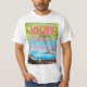 Viagens vintage de poster de um carro clássico antigo na Califórnia em Malibu, por uma bela praia.