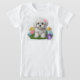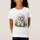 Um cachorrinho maltês bonito com um arco cor-de-rosa sentado com seus brinquedos.