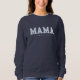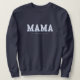 Celebre a mãe com este suéter de moda que você pode personalizar a qualquer ano. Apresenta a tipografia retrô "Mama" com um belo design floral azul na tradição toile francesa. Um presente ideal para mães que desfrutam de estética fofa e eterno, seja para um aniversário, chá de fraldas, Dia de as mães ou Natal.