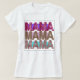 Esta camiseta vibrante e ousada é perfeita para mães que adoram se destacar no estilo. O design apresenta a palavra "MAMA" em um padrão impressionante de impressão animal com um efeito gradiente, passando de rosa para ouro e bege. A combinação com o fundo azul cria um contraste moderno e atraente. Ideal para mães com personalidade forte e espírito selvagem, perfeitas para se combinarem com jeans, leggings ou jaquetas casuais. Mostre seu orgulho maternal com este design único e feroz!