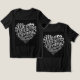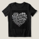 Esta é uma camiseta de mulheres negras. A design da mãe foi criada com arte generativa. A arte mostra as palavras Mãe Mamãe Mamacita Maman em forma de coração. Há formas cardíacas e as palavras estão em um estilo falso de retrografia prateada. A camiseta é uma confortável camiseta Tri-Blend da Canvas Bella. A imagem está na frente e atrás da camiseta