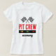 Esta t-shirt apresenta uma marca de verificação com o ditado "Pit Crew" com um gráfico de pista de corrida abaixo. Adicione seu nome, ou mãe, mamãe, mamã abaixo. Uma camiseta temática de carro divertida para o dia especial do seu pequeno!