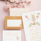 Esta design faz parte da coleção de chás de fraldas "Ballerina". Apresenta um belo papel de papelaria com coelhos de aquarela vestidos de bailarinas. Os principais convites da coleção têm o trocadilho engraçado "Somos Tutu Animados". Perfeito para comemorações de chá de fraldas feminino. Qualquer elemento ouro e brilho será impresso com tinta regular, não com folha metálica real. Pronto para personalizá-lo com os detalhes do evento, basta clicar no botão personalizar acima e adicionar as informações da sua mãe + da festa!