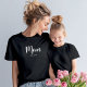 A Mãe Negra e Branca Estabeleceu o Presente da Camiseta Nova Mamãe com um texto branco elegante e brincalhão. Celebre as mães e a futura mãe no dia da Mãe com esta design de camiseta simples e divertida mostrando a palavra "Mãe" em texto de script na frente para uma vibração alegre, e espaço para você personalizar com um "Ano Estreito" embaixo. Você também pode mudar a "mãe" para mamães, mães, mama, mãe ou qualquer nome que você preferir usar, e adicionar anos a cada criança.