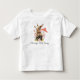 Esta camiseta infantil mostra uma ilustração aquosa de um belo coelho rodeado de flores, um cogumelo e borboletas com o texto "Coelhinho da Mamãe". O texto da t-shirt é personalizável e pode ser alterado com o seu próprio texto ou deixado como está.