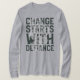 Use seu coragem alto e orgulhoso. Esta camiseta de manga longa apresenta a frase impactante “Mudança Começa com Desafio” sobreposta com gráficos de equipamento sutis—perfeita para ativistas, inovadores e rebeldes do dia a dia que defendem algo. Continue ousado, continue desafiador.