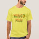 Camisa Mango Man em cores tipográficas de design e fruta de manga em fontes tropicais, para um talo de ilha Caribe.