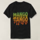 A t-shirt apresenta o texto "Mango Tango" num design a negrito e colorido. O texto é composto por múltiplas cores, com cada letra uma tonalidade diferente de laranja, amarelo e talvez até vermelho ou rosa. O aspecto geral é divertido, frutado e perfeito para o verão.