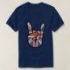 A vaca diz "moo", a mão do rock grande com o Union Jack diz: "uau!" Cor, t-shirts, suores, cartas, presentes.