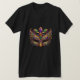 This men's t-shirt is shown in black with a fancy Mardi Gras mask art print.