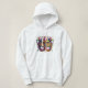 This women's pullover hoodie is shown in white with a fancy Mardi Gras mask art print.