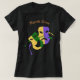 Esta Camiseta apresenta uma máscara de comédia, sorrindo e uma máscara de tragédia franzindo em Mardi Gras cores de ouro verde e roxo