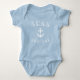 Ahoy! Faça velejar com o nosso punny-traje náutico para o seu pequeno marinheiro, com "mares o dia" em letras brancas, curvando em torno da ilustração da âncora de um navio.