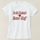 Camisa com que sou melhor metade do meu marido em letras vermelhas 3D. Camisa disponível em vários estilos e cores com mangas longas ou curtas.